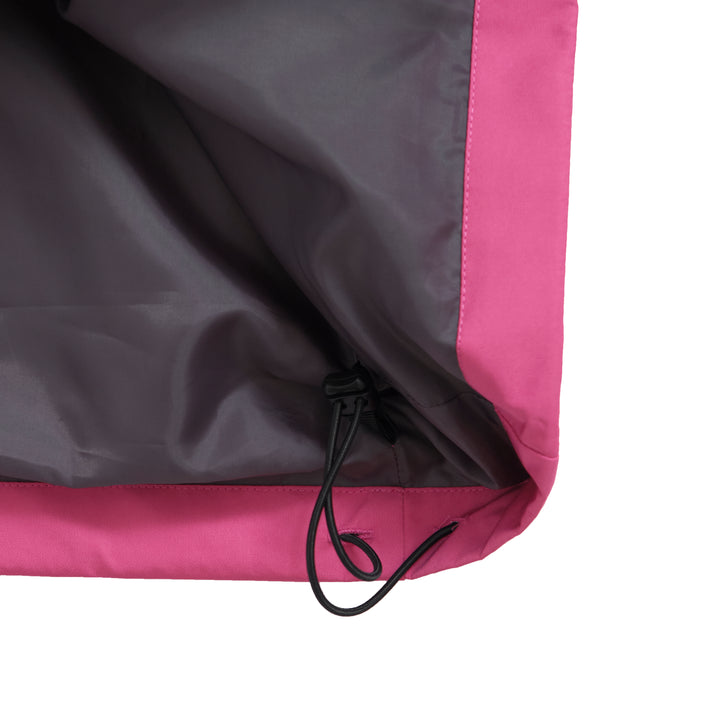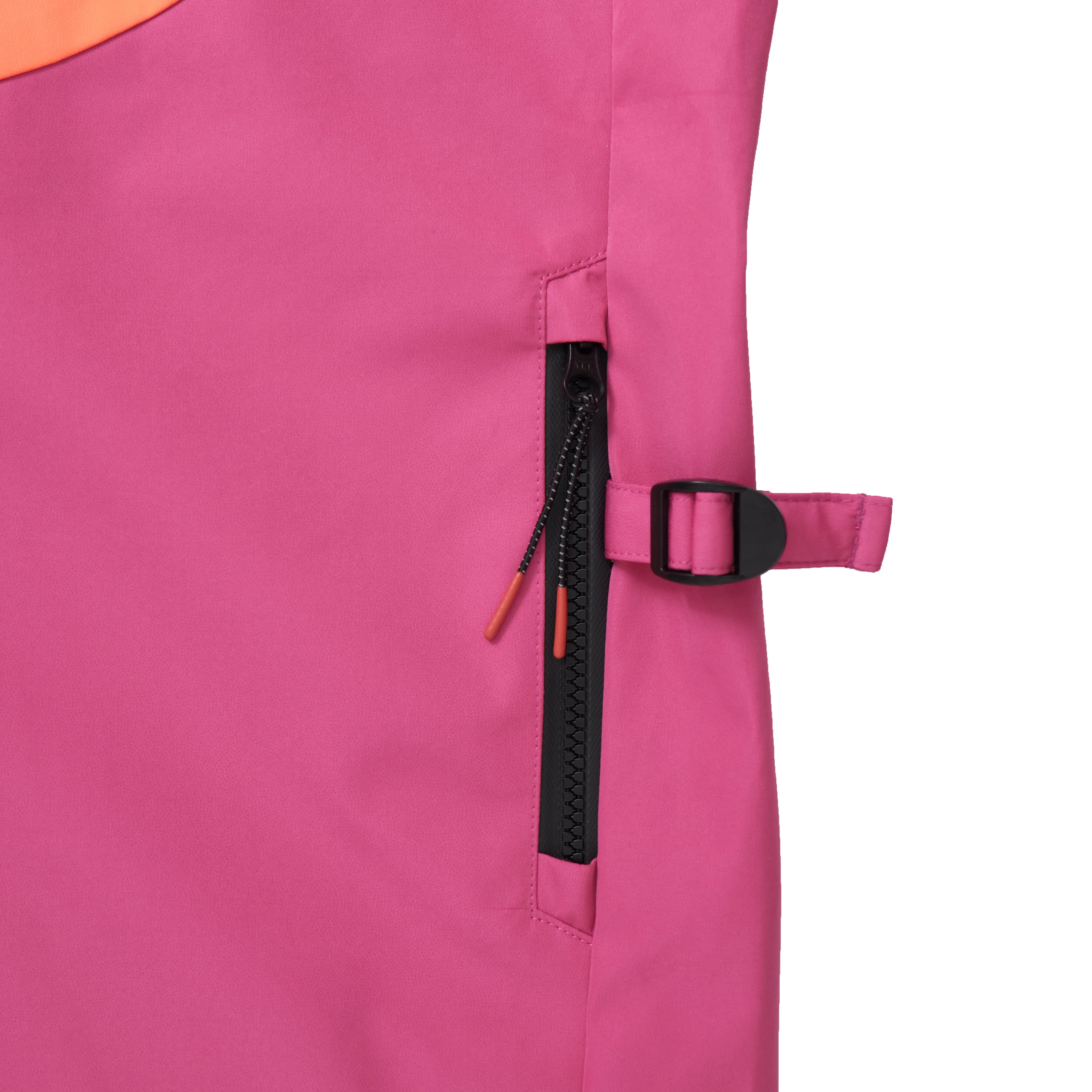 デザイン面では、フロントチェストにカラーブロッキングのジップポケットを配置し、コントラストの効いた視覚的アクセントをプラス。さらにウエストにはテープアジャスターを備え、シルエットの変化も楽しめるギミックを加えている。